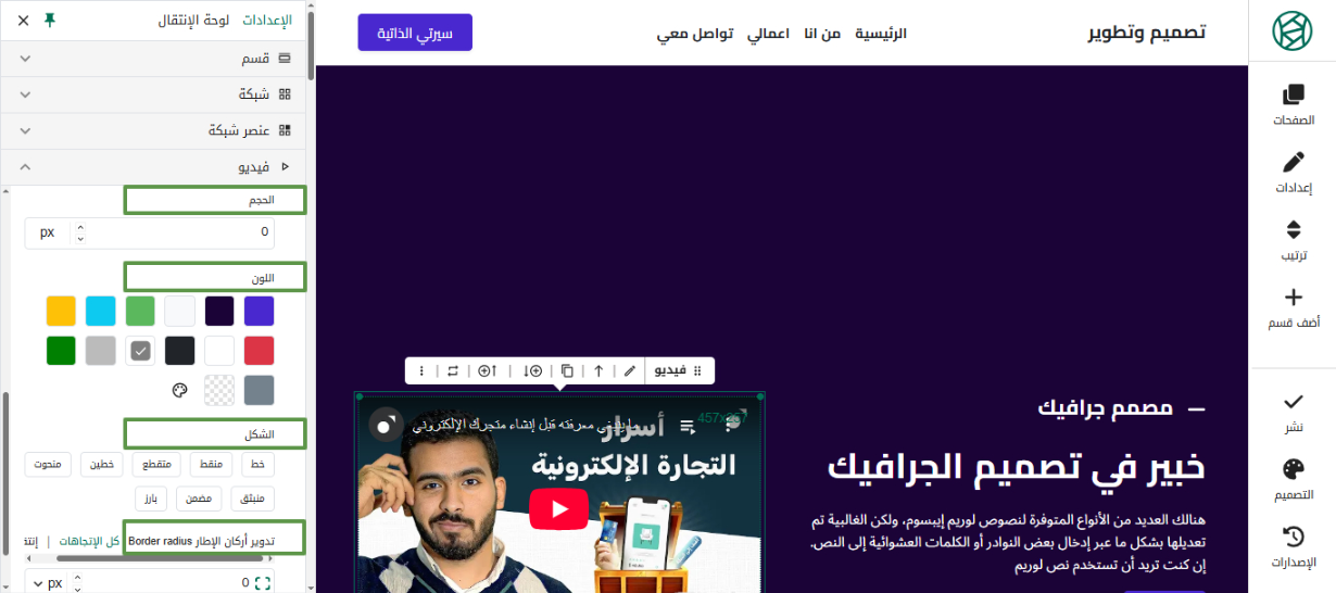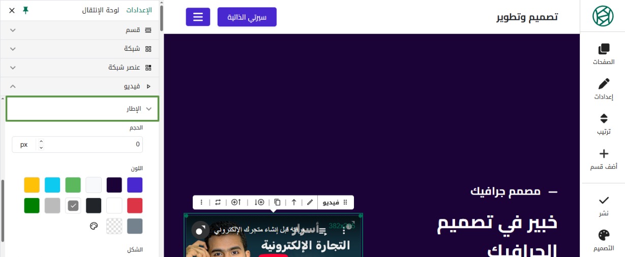 يمكنك التحكم في حجم ولون وشكل وأركان الإطار ليظهر بالشكل المطلوب.
