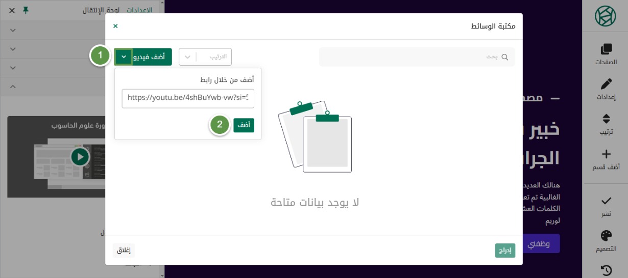 إضافة فيديو من يوتيوب