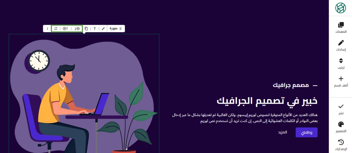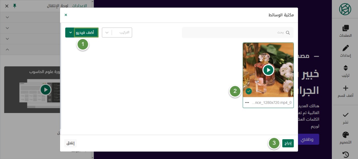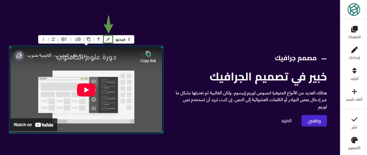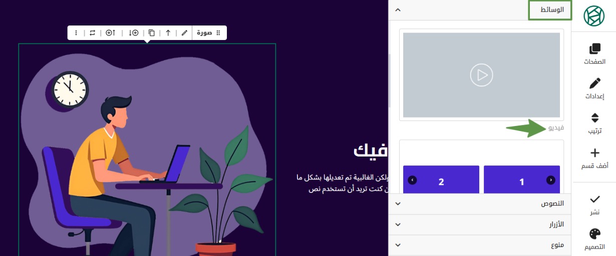 في حال رغبتك بإضافة فيديو بجانب الصورة الموجودة على الموقع، أو استبدال الصورة بفيديو، اضغط على أي من الأيقونات المشار إليها.