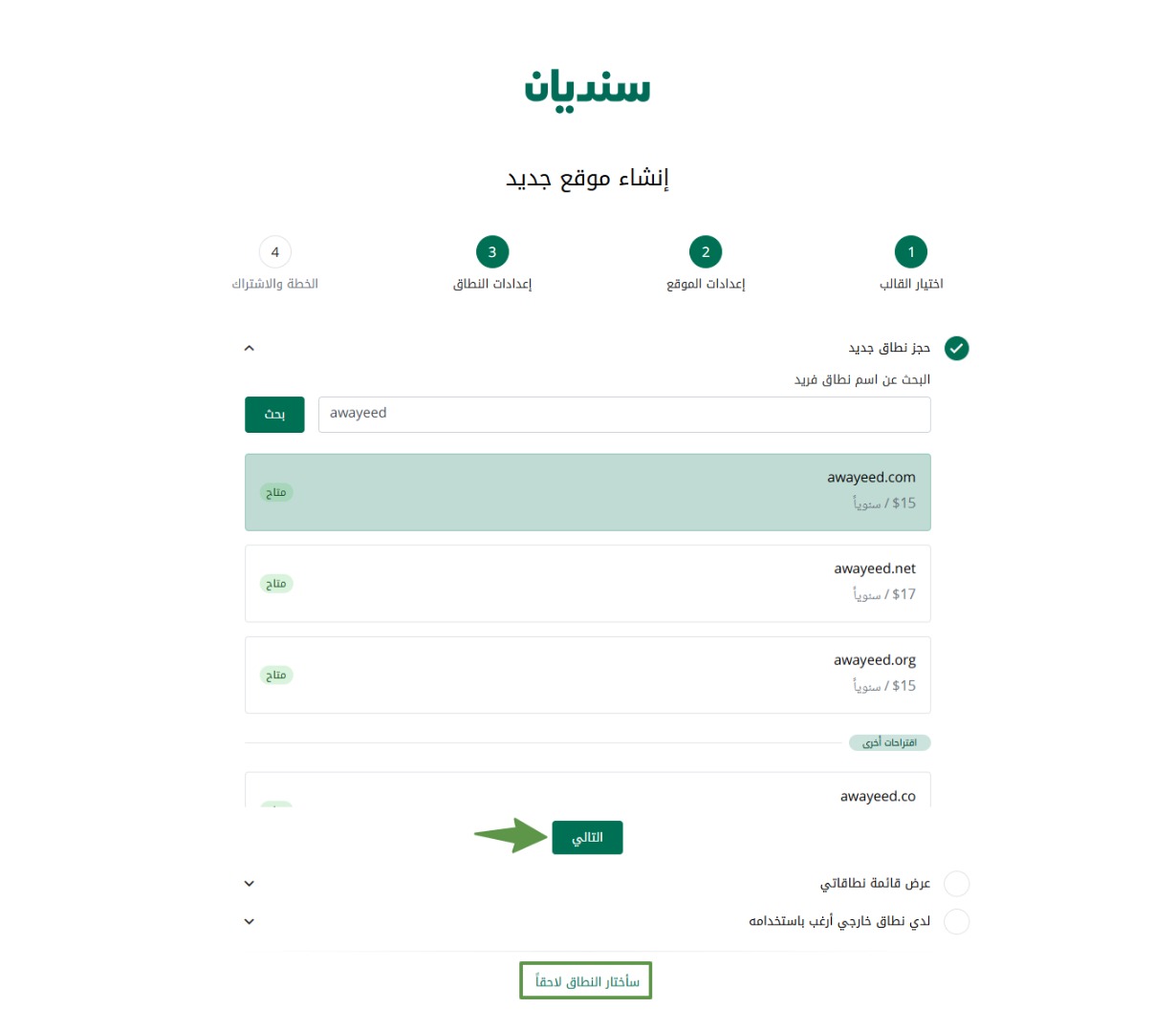 - البحث عن نطاق، واختيار أحد النطاقات المجانية مع الخطة