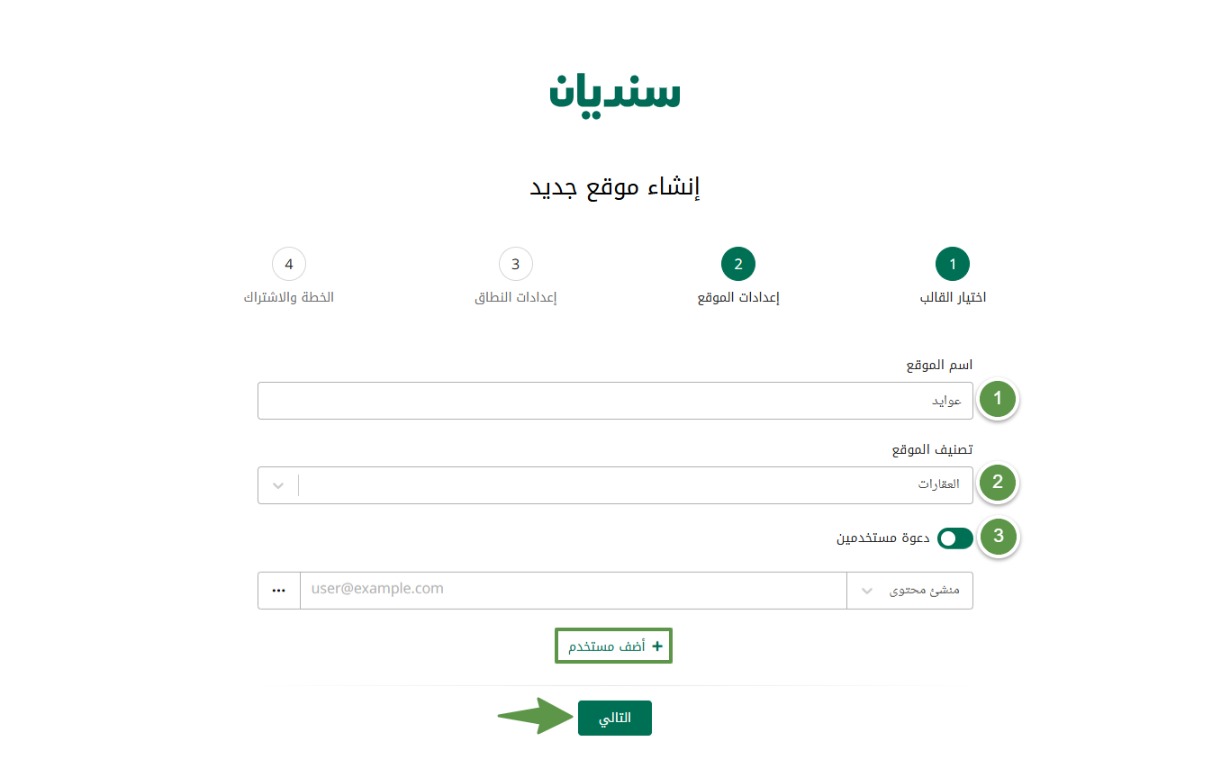 من موقع سنديان اضغط على: جرب سنديان الآن، ستتمكن من تصفح القوالب ومعاينة القالب المناسب، ثم يمكنك البدء بإنشاء موقعك باتباع الخطوات التالية: