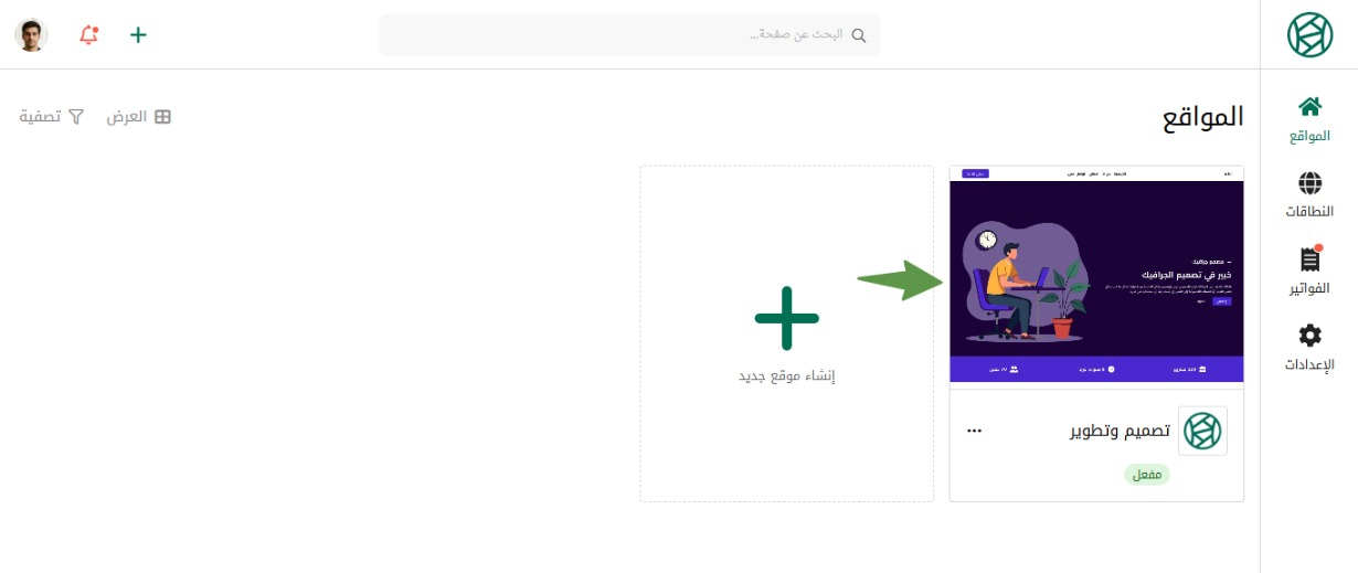 في رئيسية سنديان، اضغط على الموقع الذي ترغب بتغيير النطاق الخاص به.