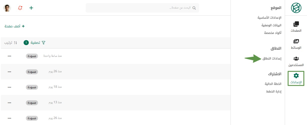من القائمة الجانبية، اضغط على الإعدادات ثم اختر إعدادات النطاق.
