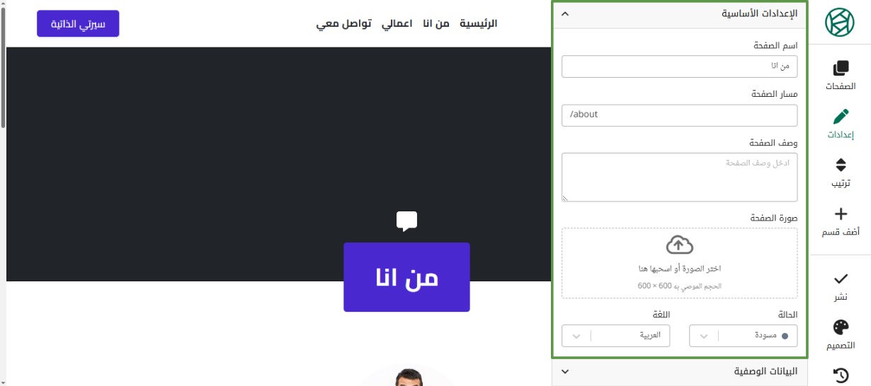في الإعدادات الأساسية للصفحة المطلوبة، يمكنك تعديل التالي: