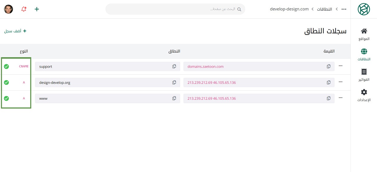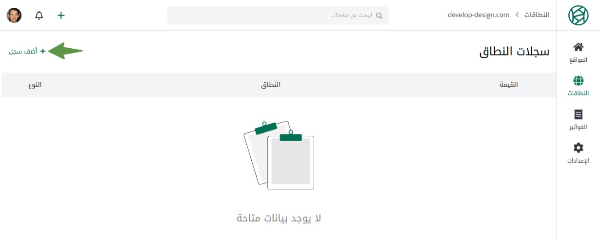 اضغط أضف سجل، لإضافة سجلات للنطاق الفرعي.