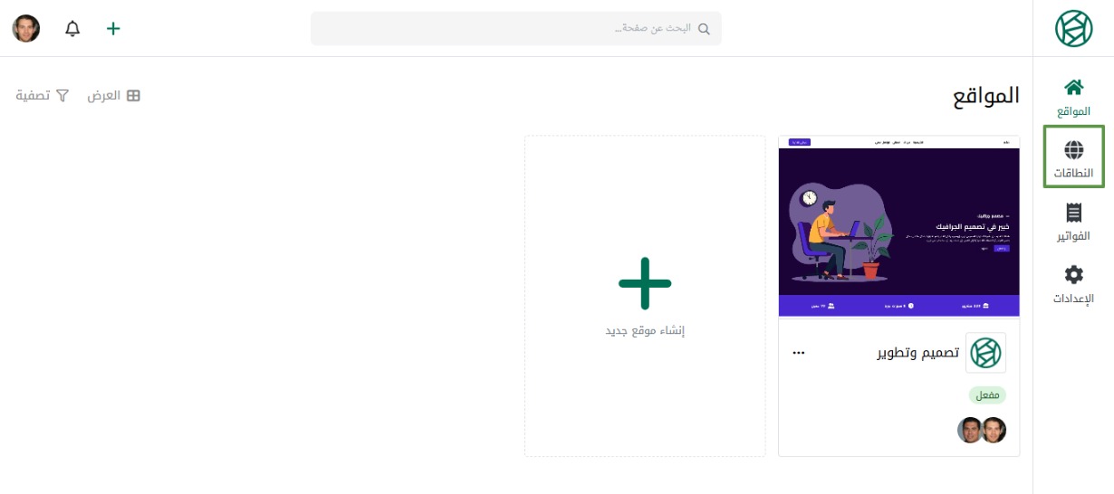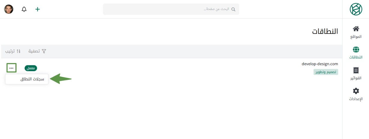 ثم من القائمة الجانبية اضغط على النطاقات.