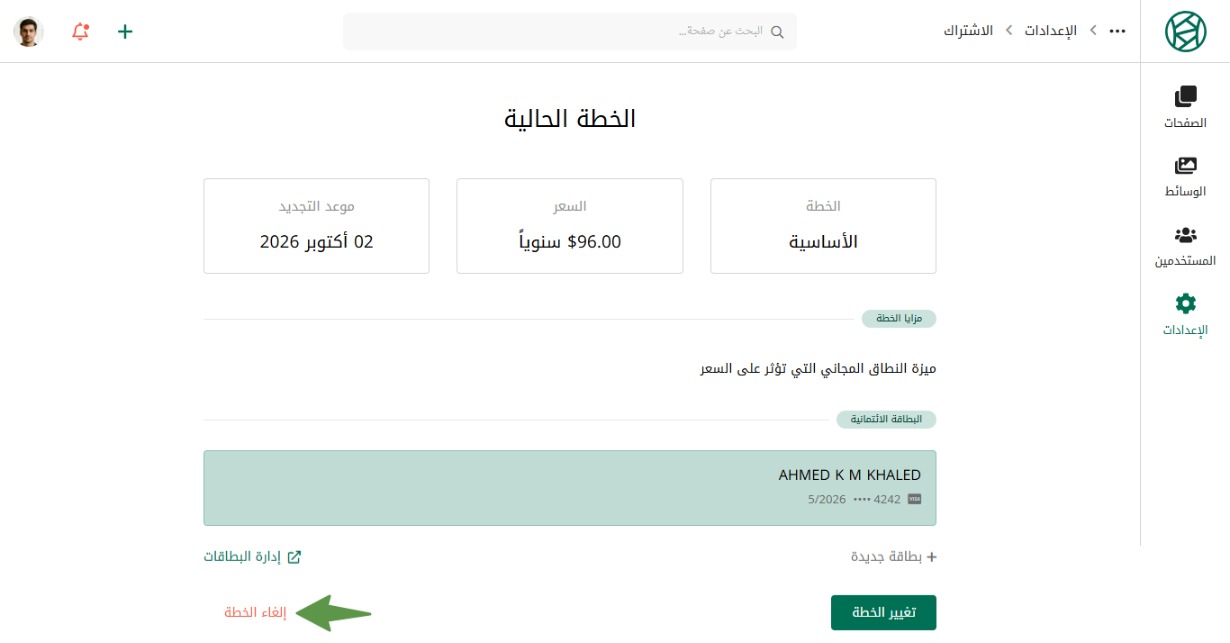 • بعد إلغاء الاشتراك سيتم تعطيل الموقع ولن يكون من الممكن الوصول إليه مجدداً