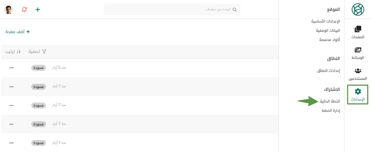 إضغط على الإعدادت في القائمة الجانبية، ثم اختر الخطة الحالية.